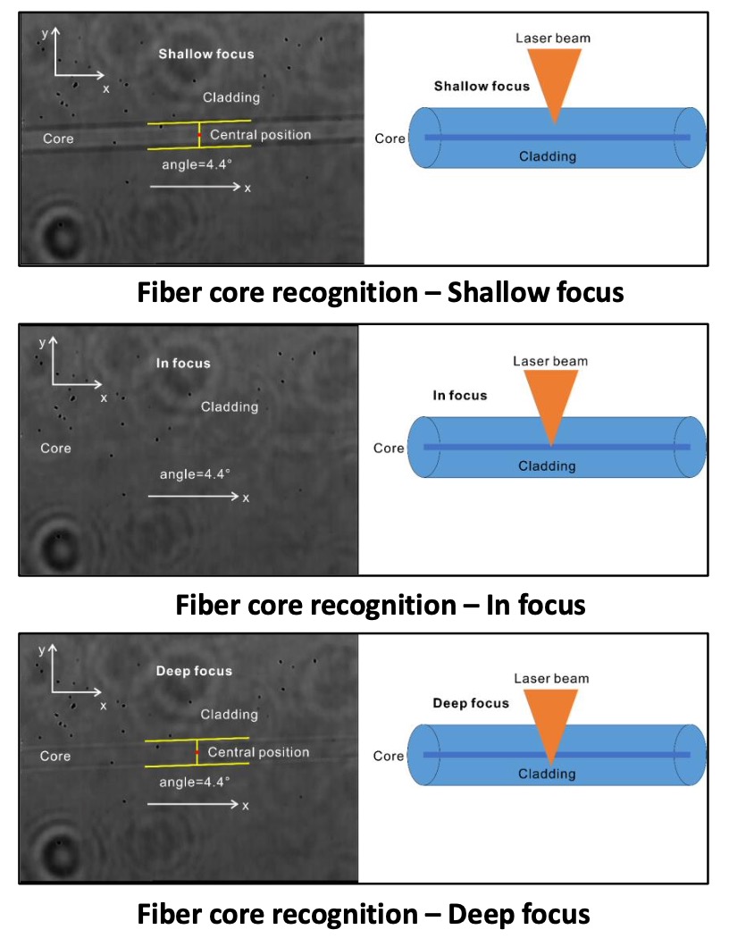 Innofocus also developed automatic fibre core tracing function enabled by AI-vision. It can automatically identify the fibre core and monitor the fabrication process by calculating the tilt angle of the core, to thereby correct the fabrication path to align with the fibre core. It therefore keeps laser focus in the fibre core throughout the fabrication process.