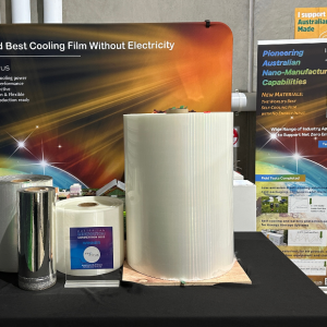 A nanostructured thin film with the world-record cooling performance and mass-production efficiency that can cool down any objects without using electricity. It has been adopted in food preservation and glasshouse farming, and it can be widely used for many more industries towards net-zero emissions.