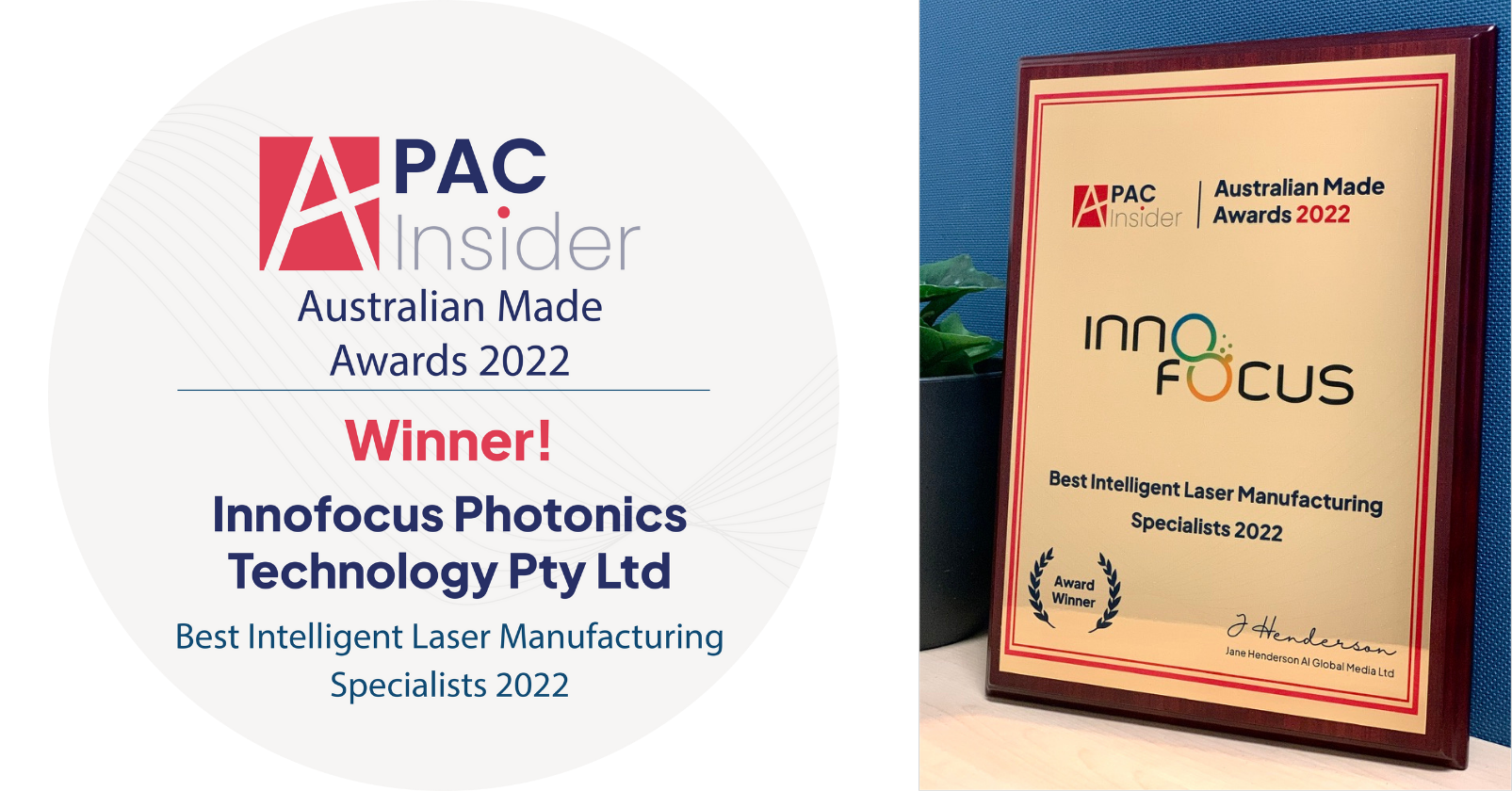 APAC Insider Australian Made Awards Best Intelligent Laser Manufacturing Specialist 2022