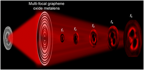 Two Hundred Nanometer Thin Multifocal Graphene Oxide Metalens for Varying Magnification Broadband Imaging